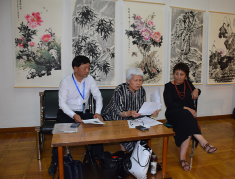 公司總經(jīng)理劉新安為吉爾吉斯斯坦前總統奧通巴耶娃講解黃河澄泥硯《九九歸一硯》