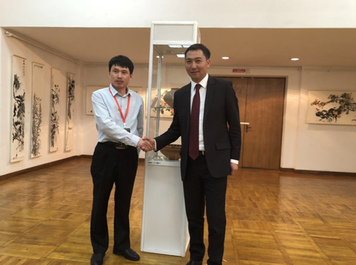 公司董事長(cháng)和總經(jīng)理與吉爾吉斯斯坦文化信息和旅游部副部長(cháng)卡德?tīng)杽e科夫.努爾熱凱合影