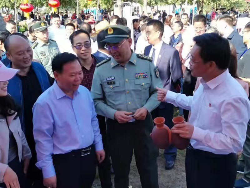 三門(mén)峽市市委書(shū)記劉南昌,市委常委三門(mén)峽市軍分區政委孟斌,縣委書(shū)記楊躍民參觀(guān)仰韶彩陶坊。